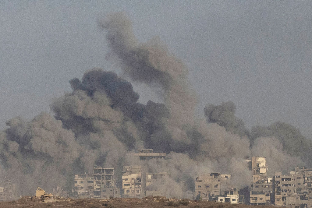 | Image title: SOUTHERN ISRAEL, ISRAEL - OCTOBER 5: Smoke rises over the Gaza Strip after an Israeli bombardment as seen from a position on the Israeli side of the border on October 5, 2025 in Southern Israel, Israel. Indirect talks between Israel, Hamas, and US mediators are set to begin in Cairo on Monday, following President Donald Trump's imposed ceasefire deadline set for today. Hamas has said in a statement that it agrees to free the remaining hostages in Gaza under the US peace plan, but has not agreed to disarmament and other aspects outlined under the 20-point plan. A statement from Israeli Prime Minister Benjamin Netanyahu's office said, "Israel is preparing to immediately implement the first phase of Trump's plan for the immediate release of all hostages." (Photo by Amir Levy/Getty Images) |