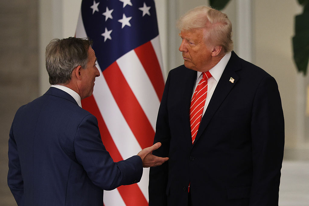 | Image title: DOHA, QATAR - MAY 14: U.S. President Donald J. Trump (R) talks with Washington Commanders owner Josh Harris before a state dinner at the Lusail Palace on May 14, 2025, in Doha, Qatar. The visit underscores the strategic partnership between the United States and Qatar, focusing on regional security and economic collaboration. (Photo by Win McNamee/Getty Images) |