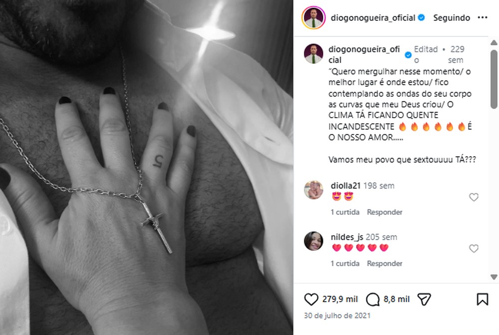 Diante do término do relacionamento, resta aos fãs e admiradores desejar que Paolla Oliveira e Diogo Nogueira encontrem felicidade em seus novos caminhos. A união do casal, que encantou muitos seguidores, deixa um legado de amor e parceria, que permanecerá eternizado nas memórias daqueles que acompanharam de perto essa história de amor entre a atriz e o cantor. Que o carinho e respeito mútuo entre Paolla e Diogo sirvam de inspiração, mesmo diante da decisão de separarem-se após cinco anos de união. |