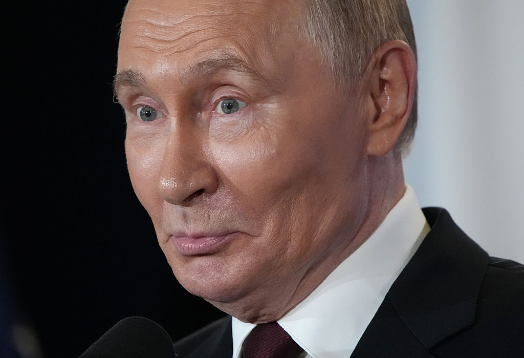 | Image title: ANCHORAGE, ALASKA - AUGUST 15: Russian President Vladimir Putin delivers a statement during a press conference with U.S. President Donald Trump at Joint Base Elmendorf-Richardson on August 15, 2025 in Anchorage, Alaska. The two leaders are meeting for peace talks aimed at ending the war in Ukraine. (Photo by Andrew Harnik/Getty Images) |