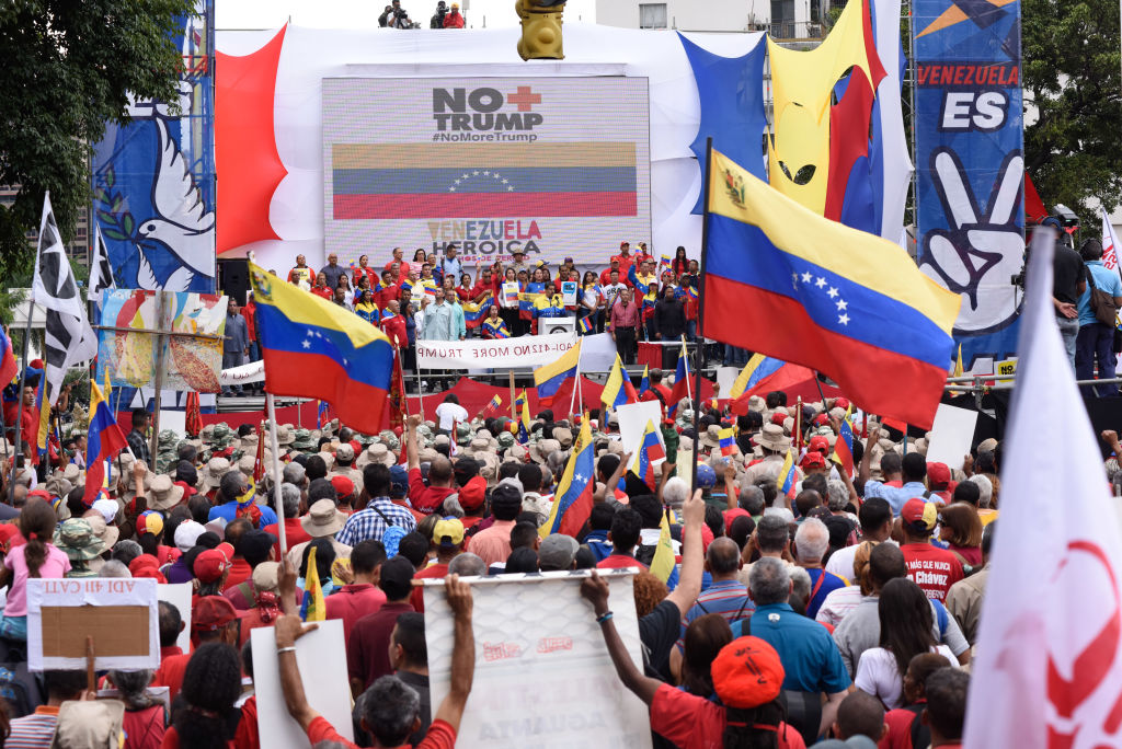 | Image title: CARACAS, VENEZUELA - AUGUST 10: Nicolas Maduro President of Venezuela gives a speech during an anti-trump demostration on August 10, 2019 in Caracas, Venezuela. President Nicolas Maduro called a demonstration against Donal Trump after US president imposed an economic embargo to Venezuela barred transactions with its authorities. This also generated the freeze on the negotiations with opposition leader Juan Guaidó in Barbados. (Photo by Carolina Cabral/Getty Images) |