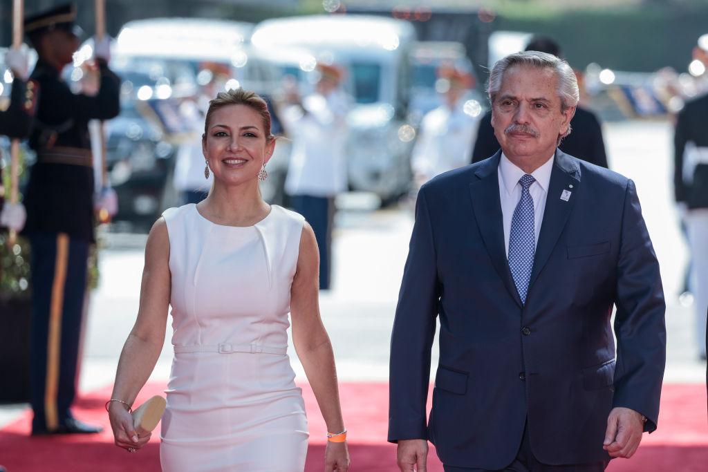 | Image title: LOS ANGELES, CALIFORNIA - JUNE 08: President Alberto Fernandez of Argentina and his wife First Lady of Argentina Fabiola Yanez arrive to the Microsoft Theater for the opening ceremonies of the IX Summit of the Americas on June 08, 2022 in Los Angeles, California. Leaders from North, Central and South America traveled to Los Angeles for the summit to discuss issues such as trade and migration. The United States is hosting the summit for the first time since 1994, when it took place in Miami. (Photo by Anna Moneymaker/Getty Images) |