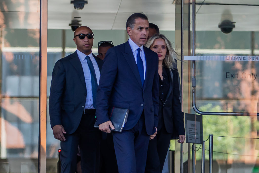 | Image title: LOS ANGELES, CALIFORNIA - SEPTEMBER 5: Hunter Biden, son of US President Joe Biden, and his wife Melissa Cohen, leave court after his guilty plea in his trial on tax evasion in Los Angeles, California, on September 5, 2024. Hunter Biden pleaded guilty to all nine tax charges he faced, without reaching a deal with prosecutors. (Photo by Apu Gomes/Getty Images) |