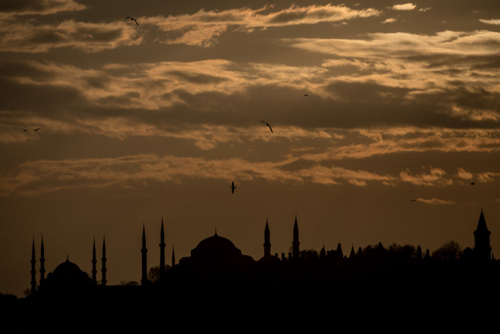 | Image title: ISTANBUL, TURKEY - JANUARY 17: The Blue Mosque and the Hagia Sofia are seen at sunset on January 17, 2018 in Istanbul, Turkey. An ambitious canal project that would link the Mediterranean Sea and the Black Sea and a project Turkish President Recep Tayyip Erdogan has dubbed one of his "crazy projects." unveiled its planned route this week amid controversy. The project dubbed " Canal Istanbul" would reduce marine traffic on the busy Bosphorus Strait. The Bosphorus is one of the world's busiest waterways. (Photo by Chris McGrath/Getty Images) |
