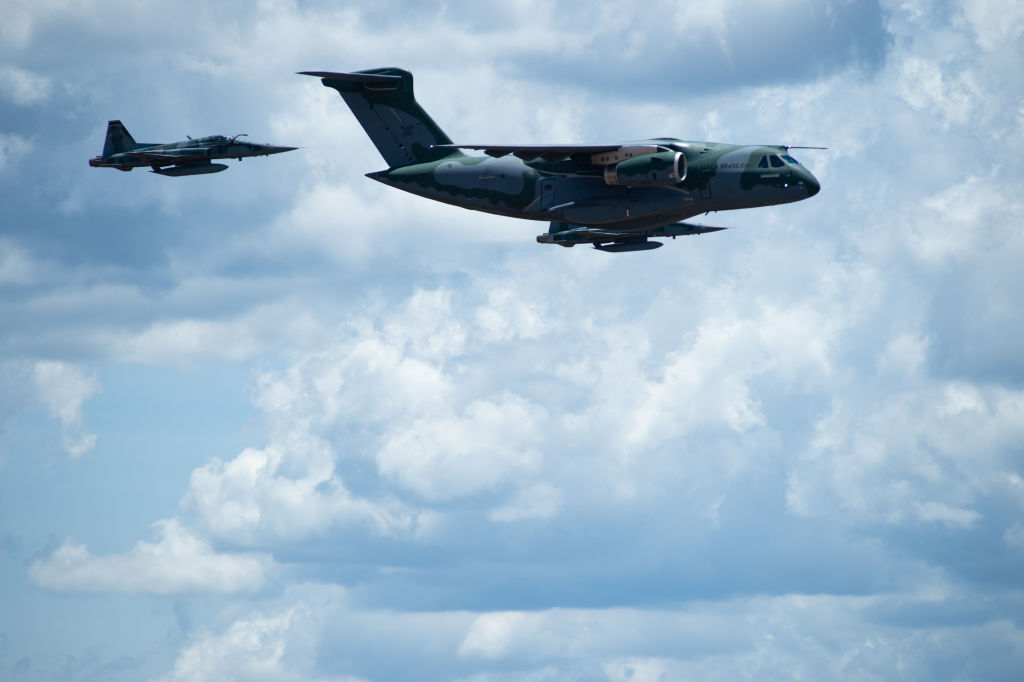 | Image title: BRASILIA, BRAZIL - MARCH 10: KC-390 Millennium of the Brazilian Air Force flies bringing people back from Ukraine on March 10, 2022 in Brasilia, Brazil. According to Brazilian presidente Jair Bolsonaro, the operation repatriates 42 Brazilian citizens and also 20 Ukranians, five Argentinians, one Colombian, 14 children and ten pets. (Photo by Andressa Anholete/Getty Images) |