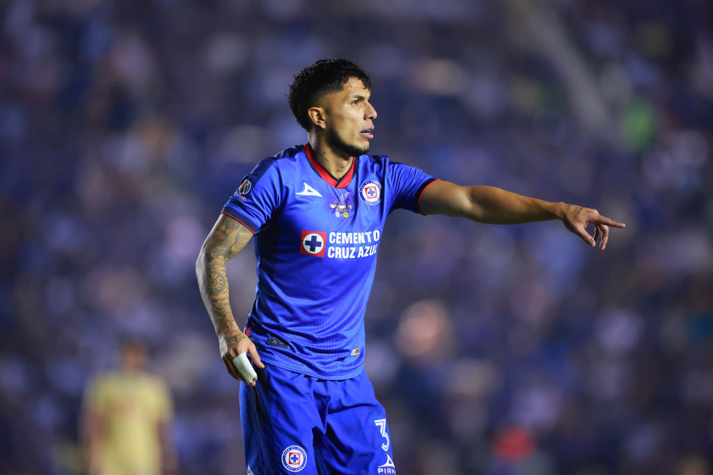 | Image title: MEXICO CITY, MEXICO - MAY 23: Carlos Salcedo of Cruz Azul react during the Final first leg match between Cruz Azul and America as part of the Torneo Clausura 2024 at Estadio Ciudad de los Deportes on May 23, 2024 in Mexico City, Mexico. (Photo by Hector Vivas/Getty Images) |