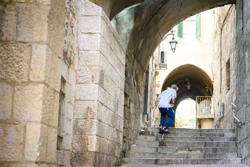 | Image title: JERUSALEM, ISRAEL - OCTOBER 05: A young boy uses a pogo stick to jump up a flight of stairs in the Old City on October 05, 2024 in Jerusalem, Israel. On October 7, 2023, members of Hamas mounted a series of attacks and raids on Israeli citizens in the Gaza Envelope border area of Israel. 251 Israelis and foreigners were kidnapped with nearly 100 still unaccounted for and 1139 people were killed. (Photo by Leon Neal/Getty Images) |