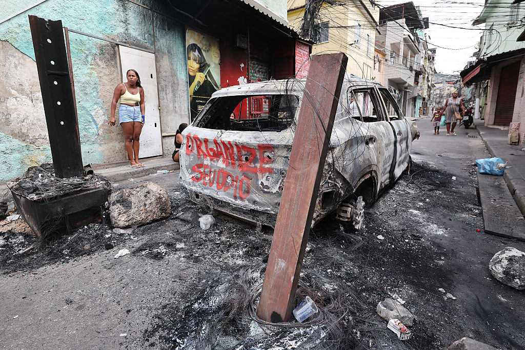 | Image title: RIO DE JANEIRO, BRAZIL - OCTOBER 29: A burned car is seen at Complexo do Alemao a day after a massive anti-gang police operation took place at the Complexo da Penha and Alemao favelas on October 29, 2025 in Rio de Janeiro, Brazil. The 'Operação Contenção' is considered the biggest of its kind in Rio de Janeiro, with more than 120 people reported dead, including 4 police officers among those. The operation targeted the Comando Vermelho, one of the biggest criminal gangs in the city. (Photo by Wagner Meier/Getty Images) |