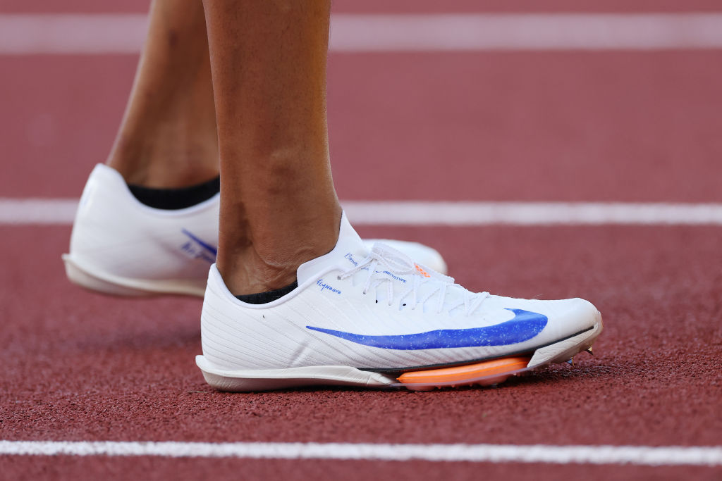 | Image title: EUGENE, OREGON - JUNE 24: The Nike cleats of Michael Norman in the men's 400 meter final on Day Four of the 2024 U.S. Olympic Team Track & Field Trials at Hayward Field on June 24, 2024 in Eugene, Oregon. (Photo by Patrick Smith/Getty Images) |