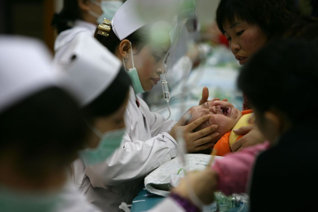 | Image title: CHONGQING, CHINA - NOVEMBER 27: (CHINA OUT) A patient receives treatment at a children's hospital on November 27, 2006 in Chongqing Municipality, China. Local health departments and hospitals have stepped up surveillance against influenza, tracheitis, pneumonia and other epidemic diseases as influenza season arrives during winter period. The Health Ministry in October required doctors and grass-roots health organizations to report infectious diseases within two hours of detection, including SARS, poliomyelitis and bird flu. (Photo by China Photos/Getty Images) |