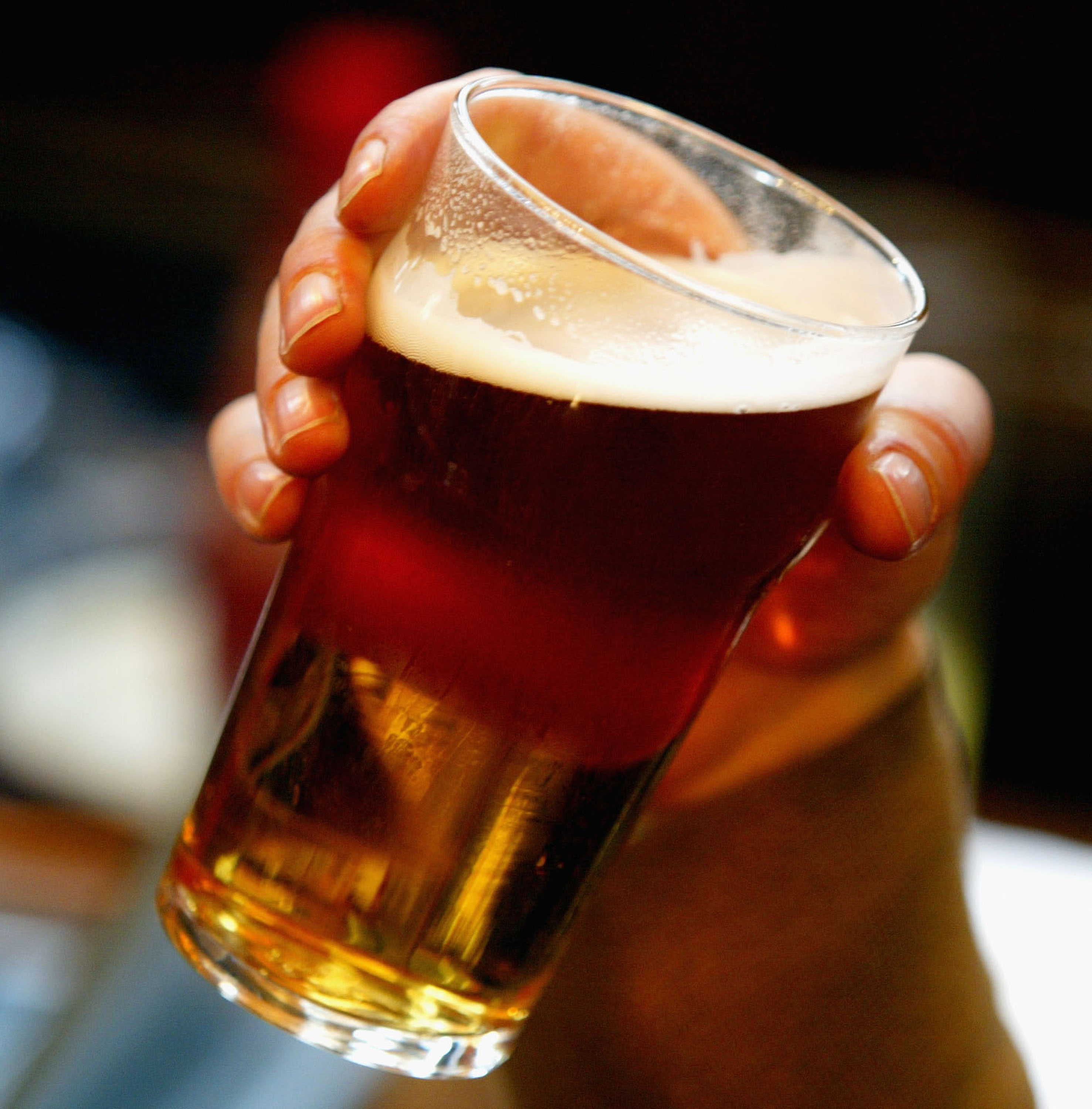 | Image title: LONDON - FEBRUARY 16: A man drinks a pint at the Marquis of Granby pub February 16, 2004 in Westminster, London. With the price of a pint of beer going up by ?0.10 on Monday, before any budget rises next month, landlords warned that the increase would threaten future of pubs in local neighbourhoods. (Photo by Graeme Robertson/Getty Images) |