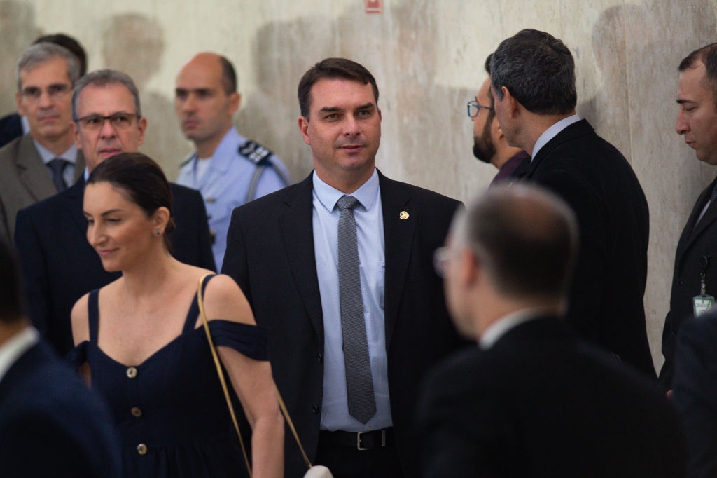 | Image title: BRASILIA, BRAZIL - APRIL 17: Senator Flavio Bolsonaro son of the Brazilian president Jair Bolsonaro arrives to the swear in of newly appointed Health Minister Nelson Teich amidst coronavirus (COVID-19) pandemic at the Planalto Palace on April, 17, 2020 in Brasilia. President Bolsonaro has fired outgoing Minister of Health Luiz Henrique Mandetta on Thursday 16th over differences in coronavirus strategy. Brazil has over 33,000 confirmed positive cases of Coronavirus and 2141 deaths. (Photo by Andressa Anholete/Getty Images) |