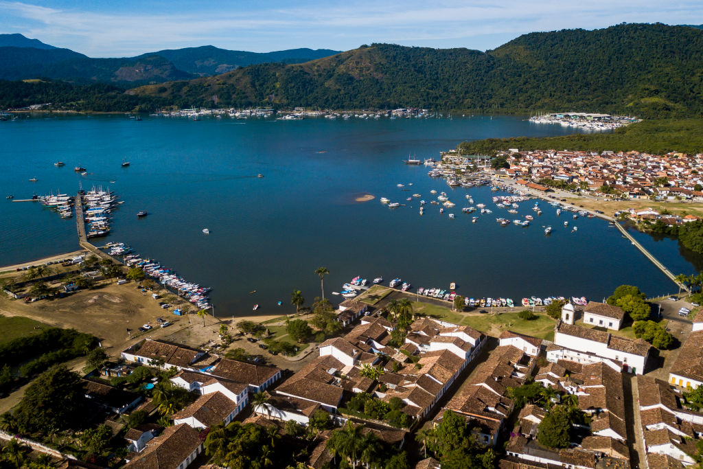 | Image title: PARATY, BRAZIL - MAY 24: Aerial view of the historic center of Paraty on May 24, 2021 in Paraty, Brazil. The Pataxó Hã Hã Hãe live in a village called "Iriri Kãnã Pataxi Üi Tanara" which means "My Village is nature". It is 30km away from the historic center of Paraty, in the coastline of the state of Rio De Janeiro. The community has 62 members from 15 families. Before the coronavirus pandemic, they made a living offering tours around their village and selling handicrafts to tourists. Since the outbreak of COVID, their income sources have been affected as the number of visitors plummeted from 200 to zero per day. They have launched an on-line campaign to raise donations while they await for more help from the government. Three cases of COVID were registered among the villagers, who stick to their ancestral medicine to treat and prevent diseases. (Photo by Buda Mendes/Getty Images) |