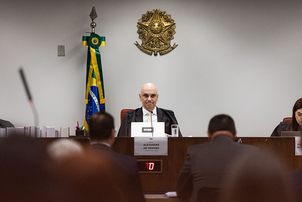 | Image title: BRASILIA, BRAZIL - JUNE 10: Alexandre de Moraes, Supreme Federal Court judge, looks on during the interrogation of former President of Brazil Jair Bolsonaro at the Supreme Federal Court on June 10, 2025 in Brasilia, Brazil. Bolsonaro is accused of leading an attempted coup against the current President of Brazil Lula Da Silva. (Photo by Arthur Menescal/Getty Images) |