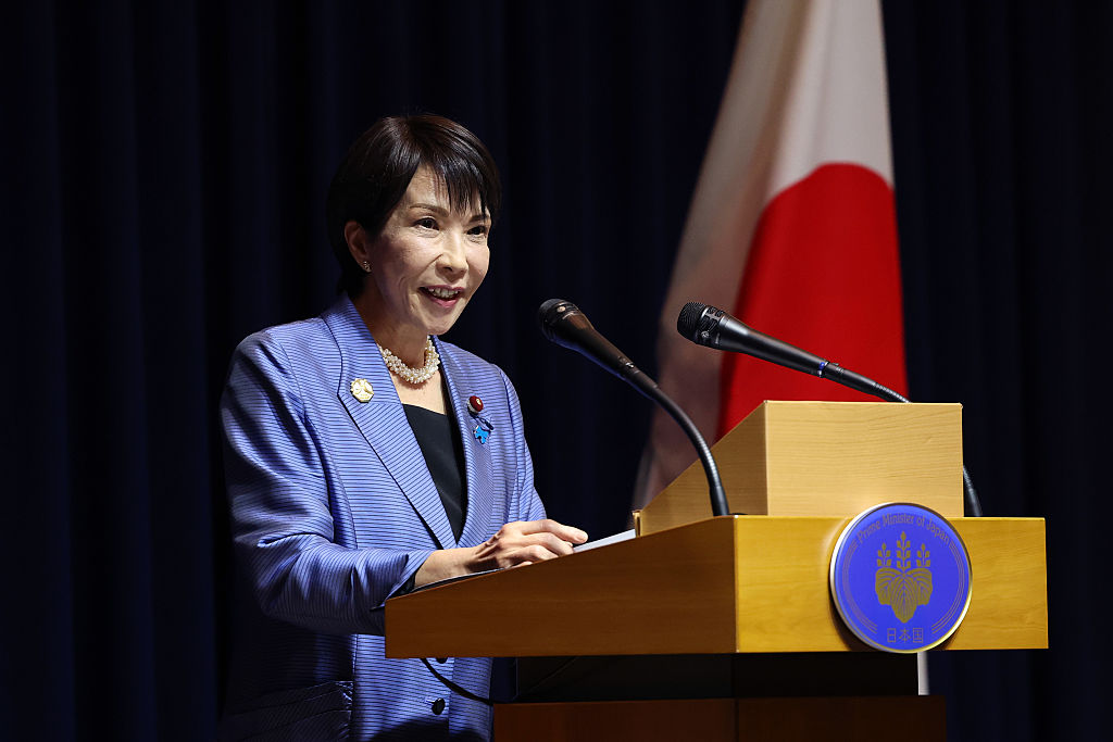 | Image title: GYEONGJU, SOUTH KOREA - NOVEMBER 01: Japanese Prime Minister Sanae Takaichi speaks during a press conference after the 2025 Asia-Pacific Economic Cooperation (APEC) Economic Leaders' summit on November 01, 2025 in Gyeongju, South Korea. Leaders and delegates from 21 APEC economies are gathering in South Korea for the upcoming APEC summit, where talks are expected to center on trade, supply chain stability, and technology cooperation. The meetings come amid heightened regional tensions and efforts to boost growth through closer economic integration, and as U.S. President Trump tours Asia on a six-day visit. (Photo by Chung Sung-Jun/Getty Images) |