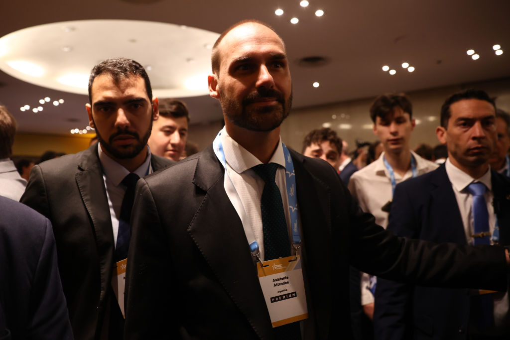 | Image title: BUENOS AIRES, ARGENTINA - DECEMBER 04: Member of the Brazilian Chamber of Deputies Eduardo Bolsonaro arrives at the CPAC Argentina 2024, Conservative Political Action Conference, on December 04, 2024 in Buenos Aires, Argentina. The CPAC is considered the largest and most influential forum of conservatives and ultra liberals in the world. (Photo by Tomas Cuesta/Getty Images) |