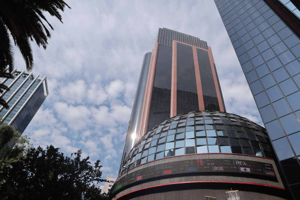 | Image title: MEXICO CITY, MEXICO - MARCH 13: An electronic panel displaying several currency symbols at Bolsa Mexicana de Valores headquarters on March 13, 2020 in Mexico City, Mexico. Mexican peso, crude oil price and Mexican stock market have been plunging considerably after WHO declared COVID-19 a pandemic on Wednesday 11th. According to the WHO official report released late on March 12th, Mexico has 12 confirmed cases of COVID-19. Even security measures are being implemented in airports, ports and border crossings, Mexican government stated no travel bans are being considered. (Photo by Hector Vivas/Getty Images) |