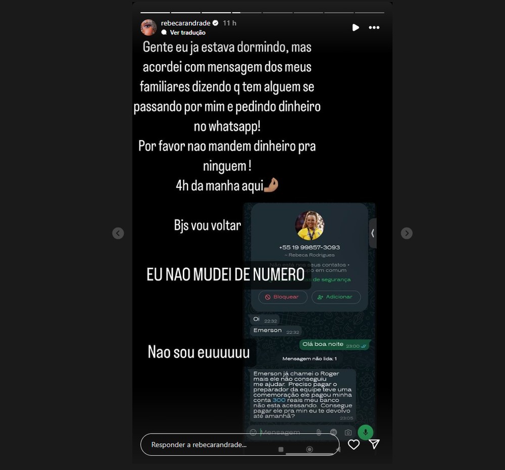 Golpe do "falso familiar" no whats não poupou nem Rebeca Andrade |
