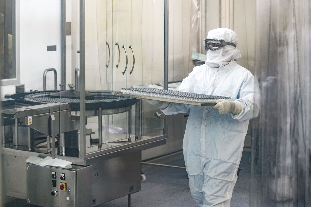 | Image title: RIO DE JANEIRO, BRAZIL - FEBRUARY 12: A laboratory technician prepares vials of the first experimental batch of the AstraZeneca/Oxford vaccines against Covid-19 at the Institute of Technology in Immunobiology (Bio-Manguinhos) on February 12, 2021 in Rio de Janeiro, Brazil. The Oswaldo Cruz Foundation (Fiocruz) started to bottle vaccines manufactured in partnership with AstraZeneca and finished in Brazil with raw materials (active pharmaceutical ingredients) imported from China. The first million doses are due by March 19. (Photo by Wagner Meier/Getty Images) |