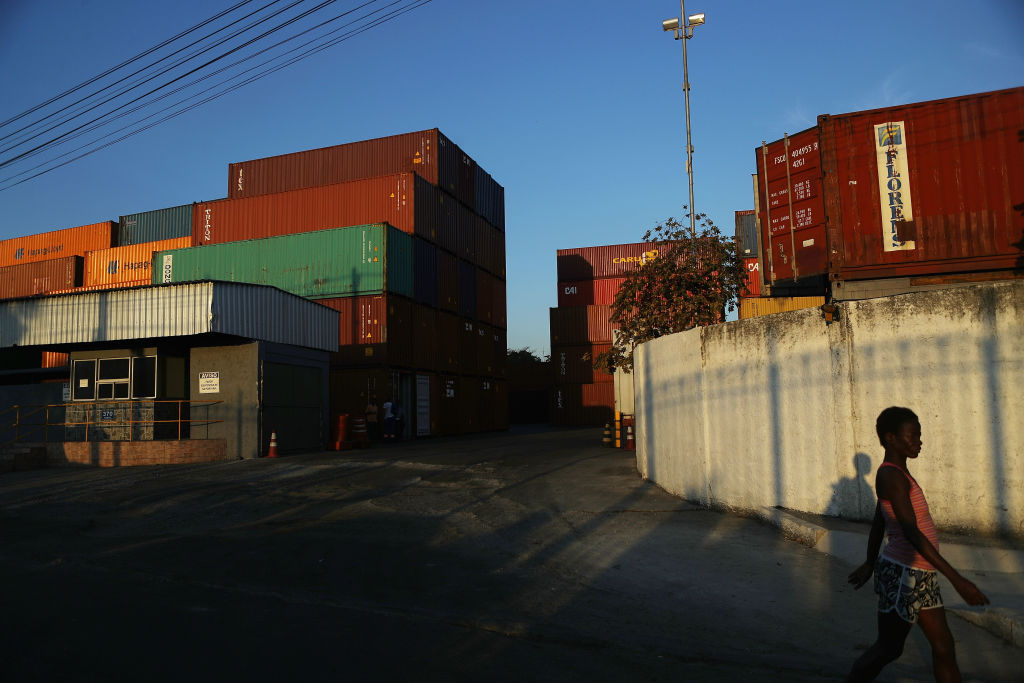 | Image title: RIO DE JANEIRO, BRAZIL - AUGUST 08: A woman walks past shipping containers in the Caju neighborhood, which houses two forlorn shipyards along Guanabara Bay, on August 8, 2017 in Rio de Janeiro, Brazil. The once bustling industrial area, which employed thousands, now sits largely abandoned. According to the National Naval Industry Union, Rio de Janeiro has lost around 15,000 jobs in the shipyard industry since 2015 amidst an economic crisis in Brazil. (Photo by Mario Tama/Getty Images) |